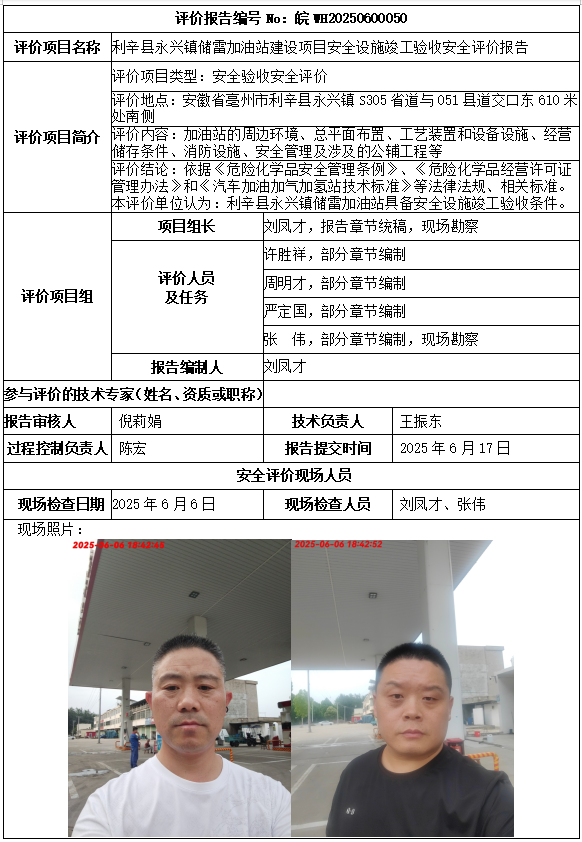 利辛县永兴镇储雷加油站建设项目安全设施竣工验收安全评价报告