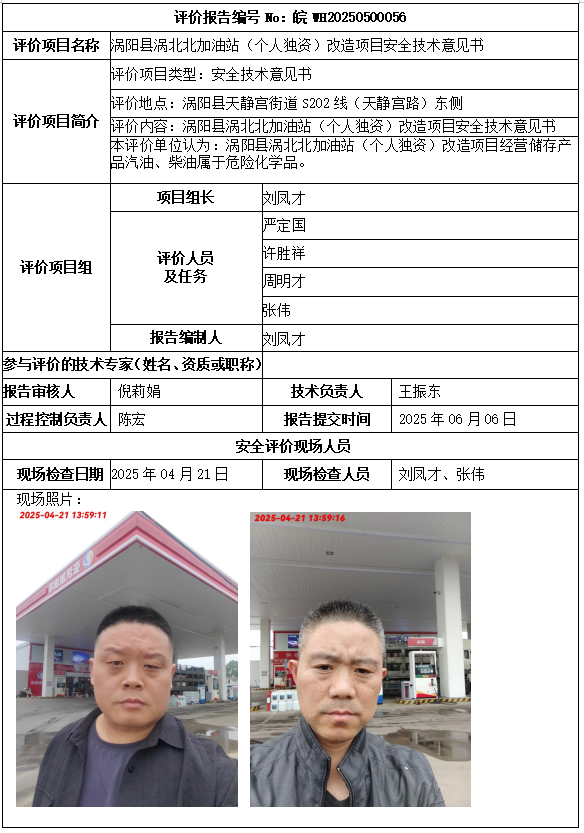 涡阳县涡北北加油站(个人独资)改造项目安全技术意见书