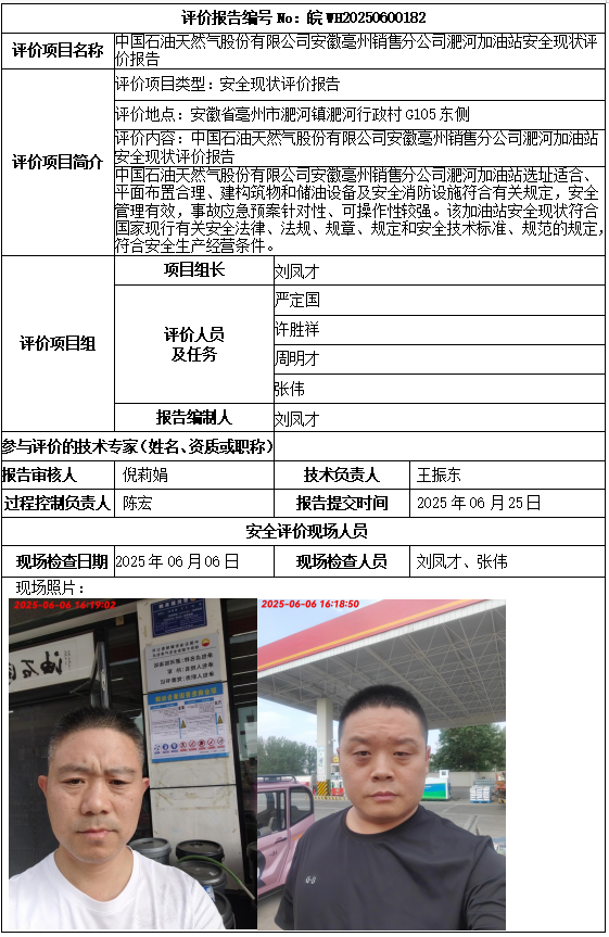 中国石油天然气股份有限公司安徽亳州销售分公司淝河加油站安全现状评价报告