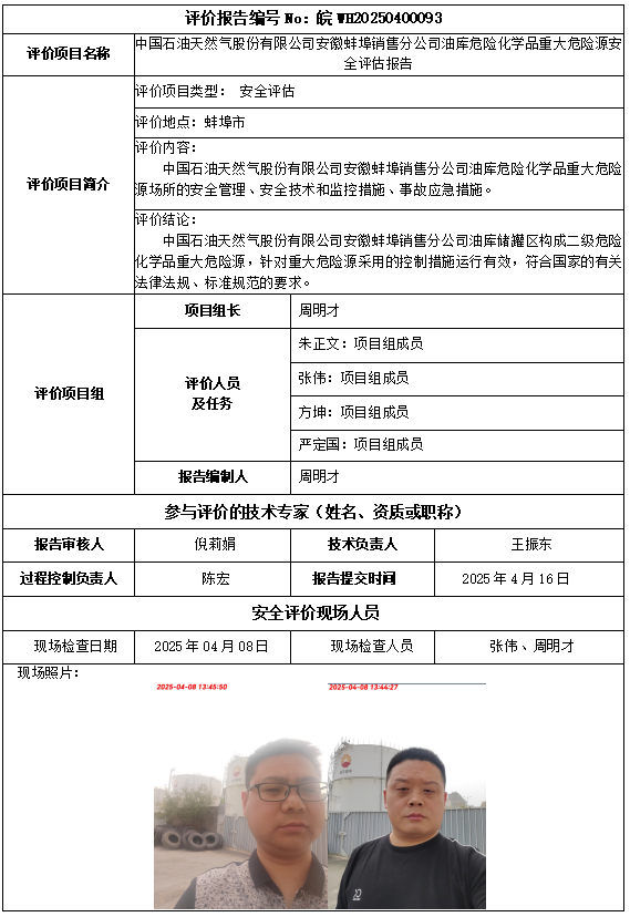 中国石油天然气股份有限公司安徽蚌埠销售分公司油库危险化学品重大危险源安全评估报告