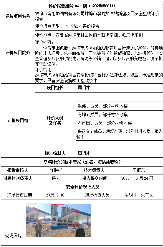 蚌埠市滨湖加油站有限公司蚌埠市滨湖加油站新建项目安全验收评价报告