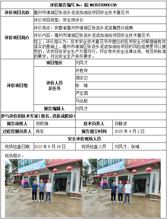 亳州市谯城区张店乡泥店加油站项目安全技术意见书