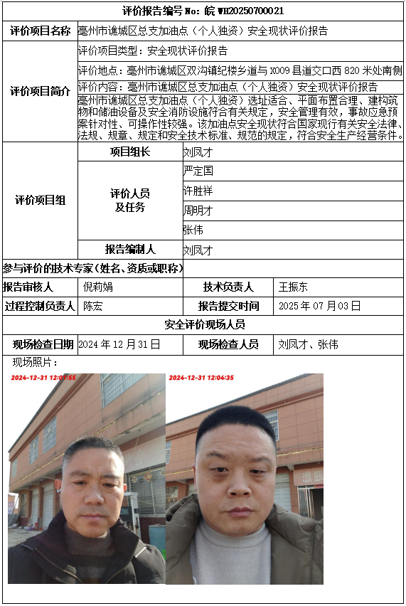 亳州市谯城区总支加油点(个人独资)安全现状评价报告