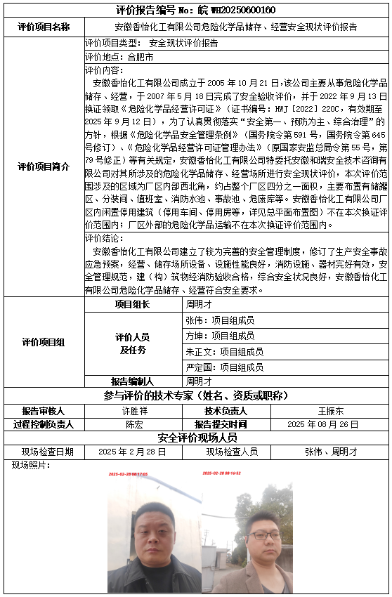 安徽香怡化工有限公司危险化学品储存、经营安全现状评价报告