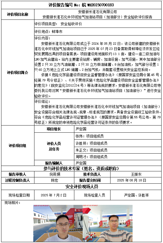 安徽新长淮石化有限公司安徽新长淮石化中环线加气加油站项目(加油部分)安全验收评价报告