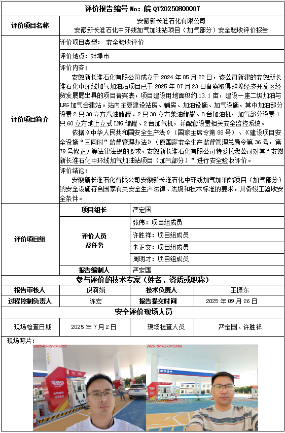 安徽新长淮石化有限公司安徽新长淮石化中环线加气加油站项目(加气部分)安全验收评价报告