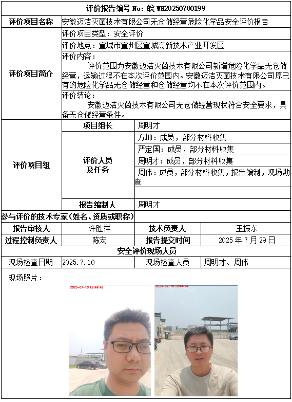 安徽迈洁灭菌技术有限公司无仓储经营危险化学品安全评价报告