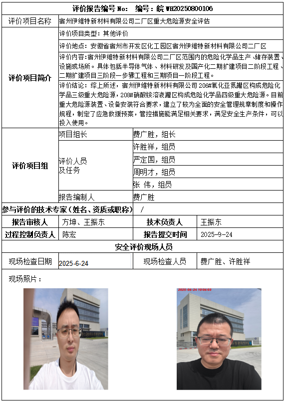 宿州伊维特新材料有限公司二厂区重大危险源安全评估