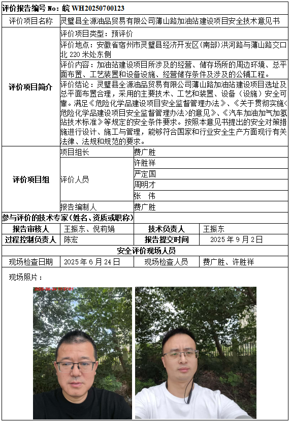 灵璧县全源油品贸易有限公司薄山路加油站建设项目安全技术意见书