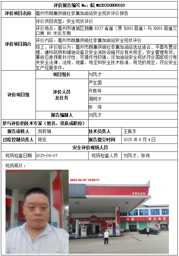 亳州市颜集供销社李集加油站安全现状评价报告