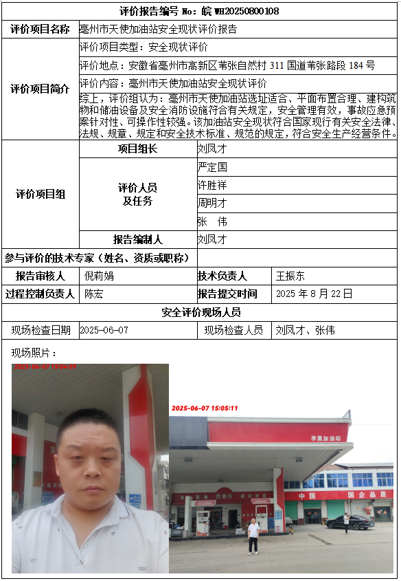 亳州市天使加油站安全现状评价报告