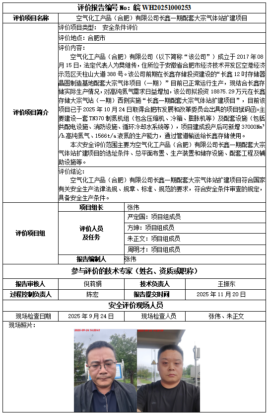 空气化工产品(合肥)有限公司长鑫一期配套大宗气体站扩建项目安全条件评价