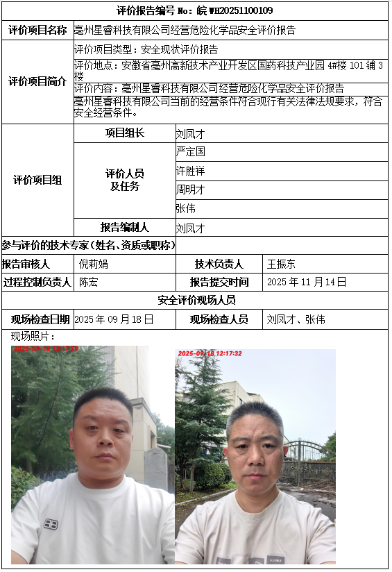 亳州星睿科技有限公司经营危险化学品安全评价报告
