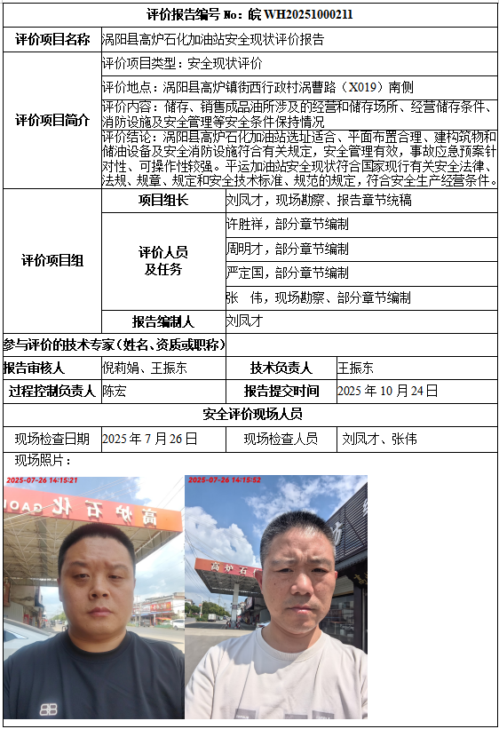 涡阳县高炉石化加油站安全现状评价报告