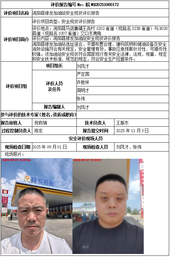 涡阳县禄发加油站安全现状评价报告