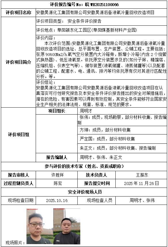 安徽昊源化工集团有限公司安徽昊源后备液氧冷量回收改造项目