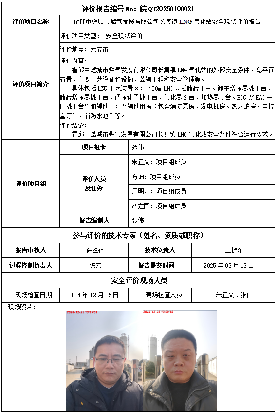 霍邱中燃城市燃气发展有限公司长集镇LNG气化站安全现状评价报告