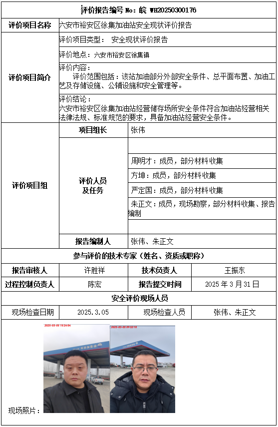 六安市裕安区徐集加油站安全现状评价报告