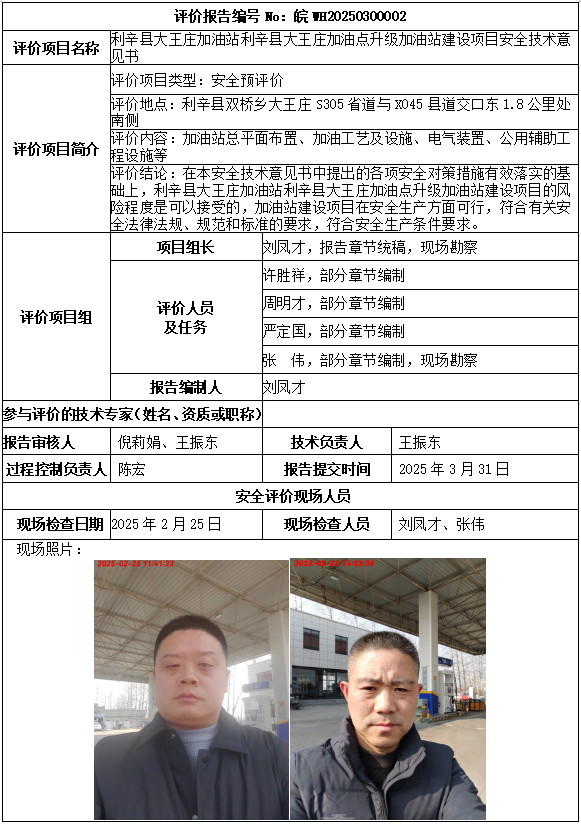 利辛县大王庄加油站利辛县大王庄加油点升级加油站建设项目安全技术意见书
