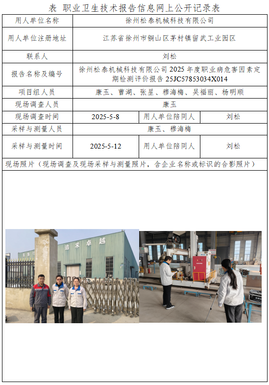 徐州松泰机械科技有限公司2025年度职业病危害因素定期检测评价报告