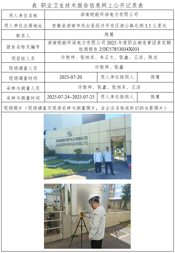 淮南皖能环保电力有限公司2025年度职业病危害因素定期检测报告