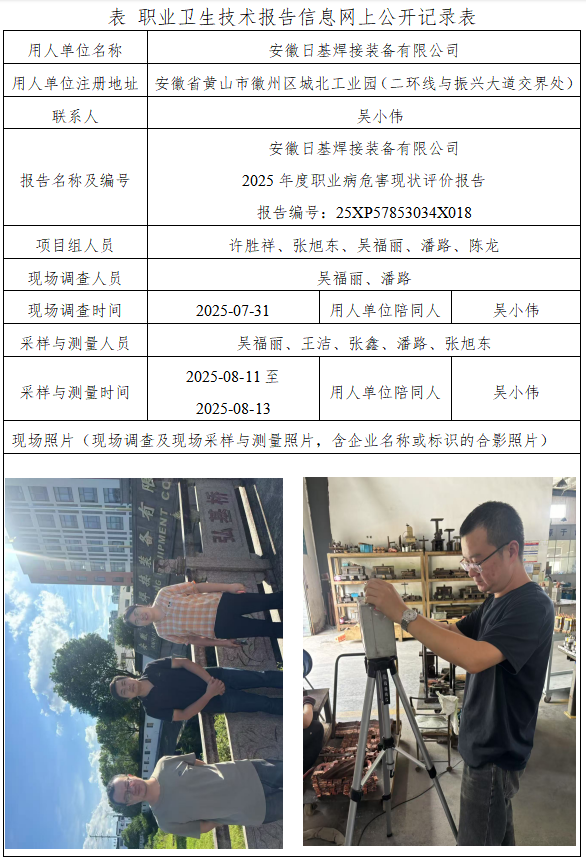安徽日基焊接装备有限公司 2025年度职业病危害现状评价报告