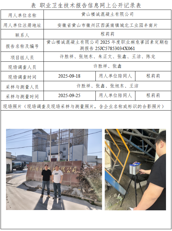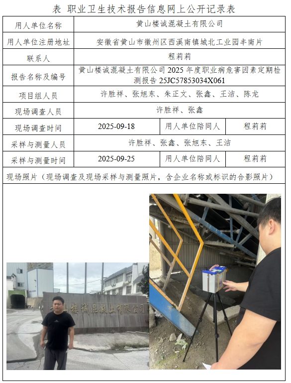 黄山楼诚混凝土有限公司2025年度职业病危害因素定期检测报告