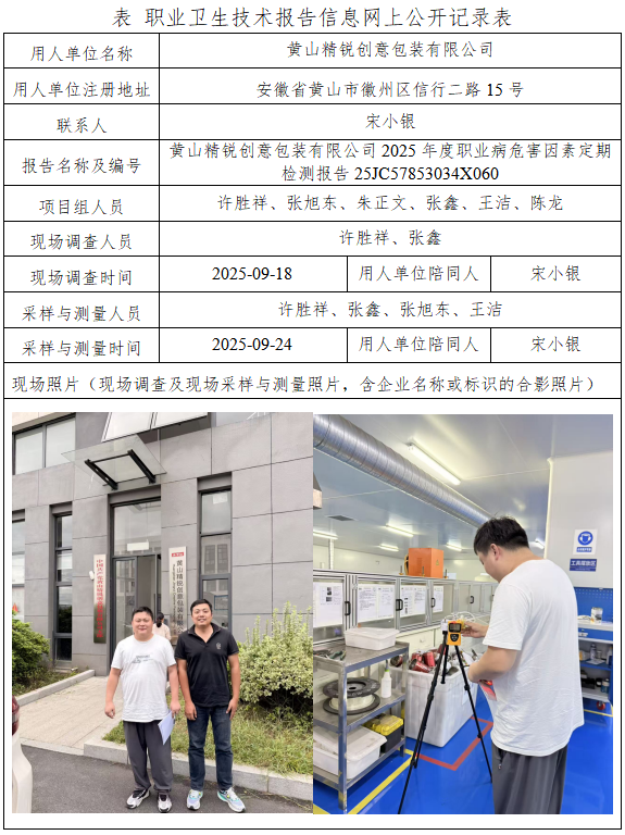 黄山精锐创意包装有限公司2025年度职业病危害因素定期检测报告