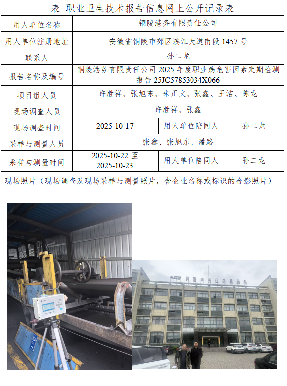 铜陵港务有限责任公司2025年度职业病危害因素定期检测报告