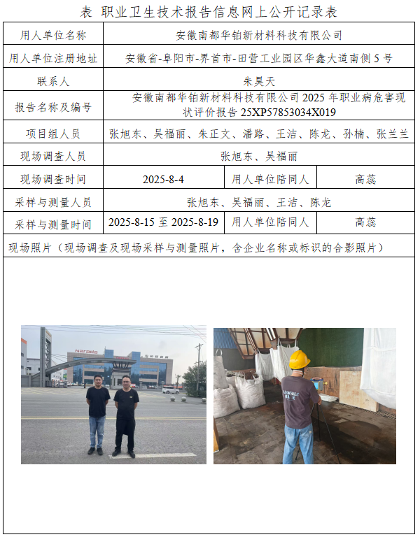 安徽南都华铂新材料科技有限公司 2025年度职业病危害现状评价报告