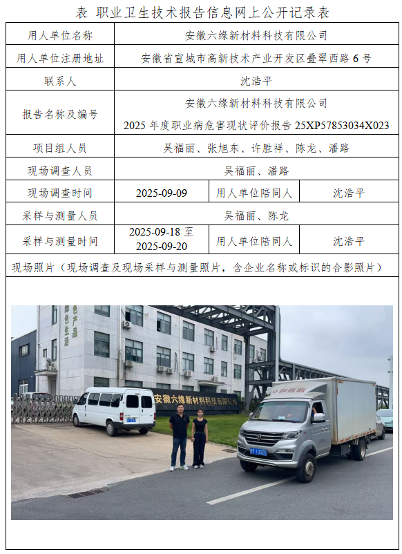 安徽六缘新材料科技有限公司 2025年度职业病危害现状评价报告