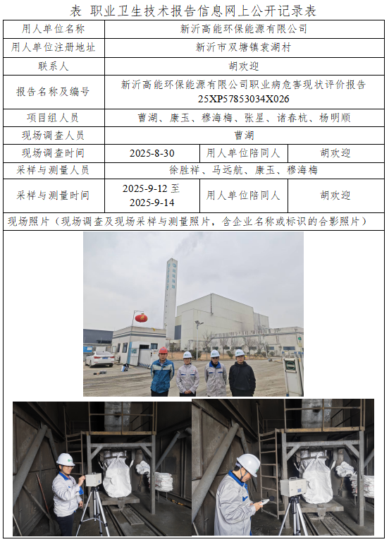 新沂高能环保能源有限公司职业病危害现状评价报告