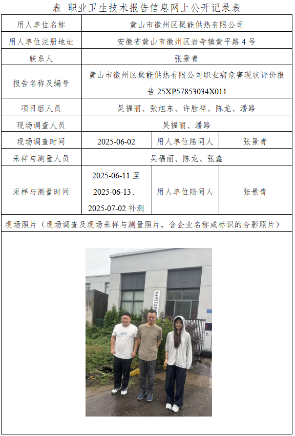 黄山市徽州区聚能供热有限公司职业病危害现状评价报告