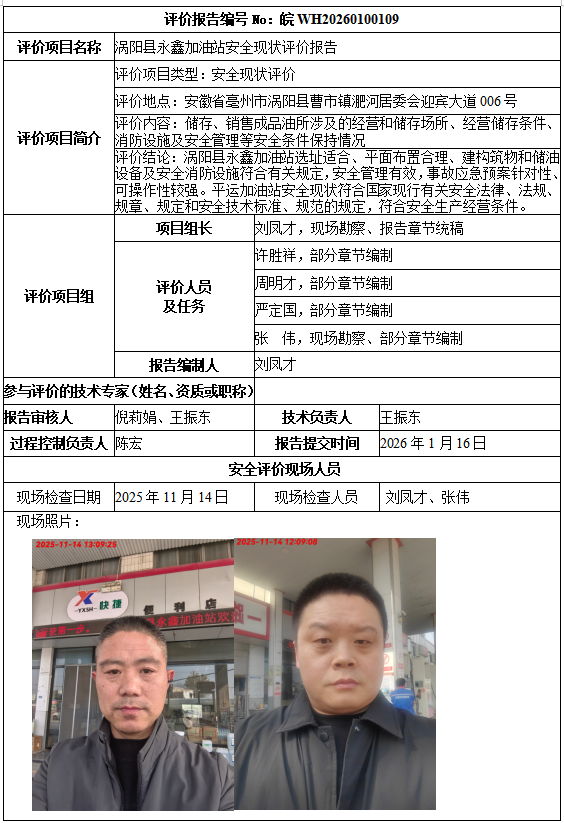 涡阳县永鑫加油站安全现状评价报告