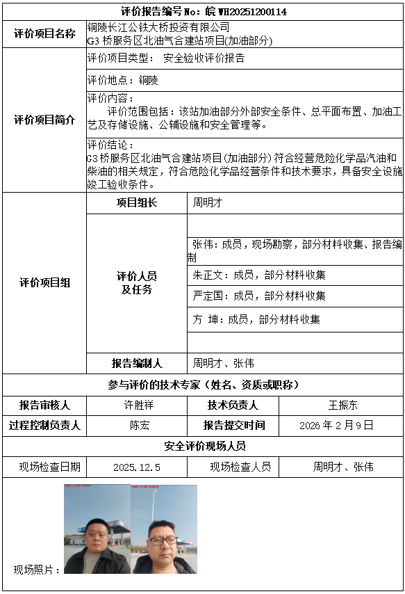 铜陵长江公铁大桥投资有限公司 G3桥服务区北油气合建站项目(加油部分)安全验收评价报告