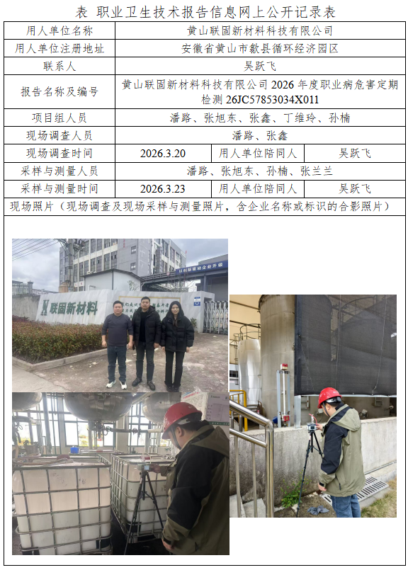 黄山联固新材料科技有限公司2026年度职业病危害定期检测报告