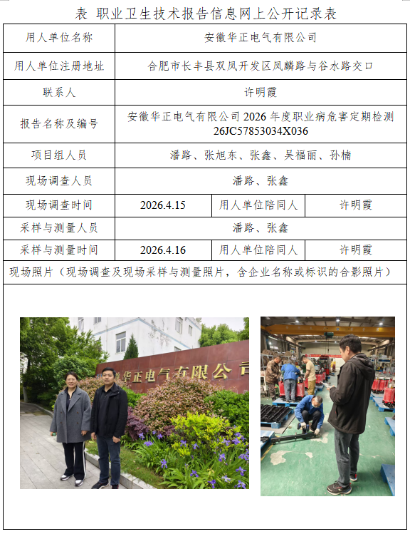 安徽华正电气有限公司2026年度职业病危害定期检测报告