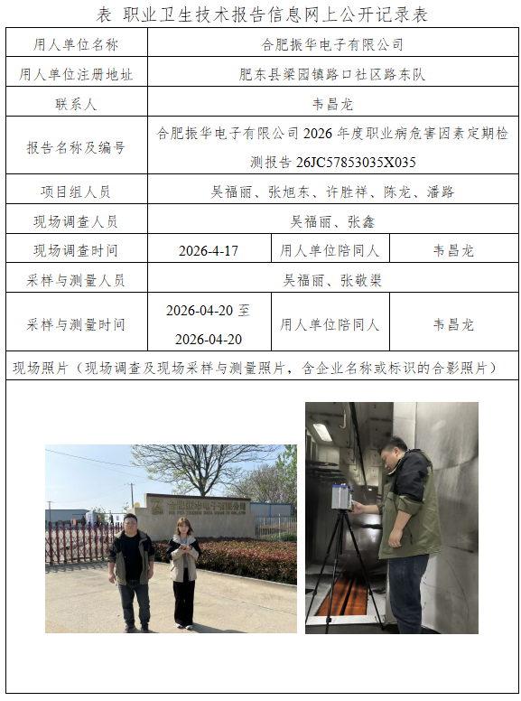 合肥振华电子有限公司2026年度职业病危害因素定期检测报告