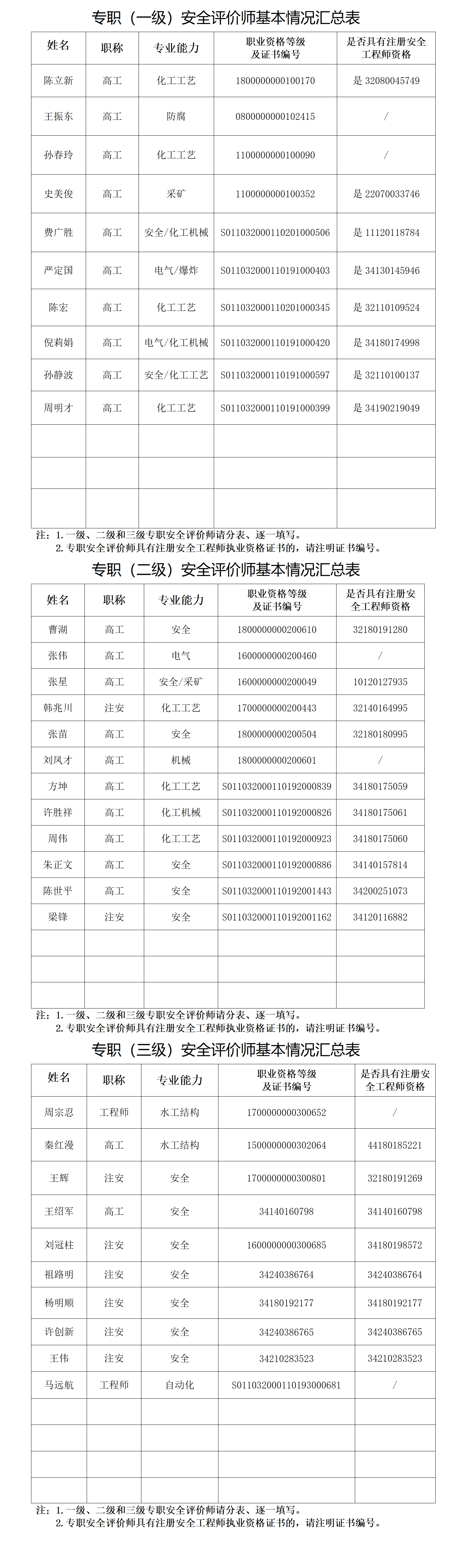 专职安全评价师人员表