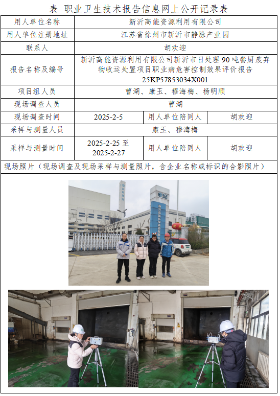2025年第一季度职业卫生评价报告公示