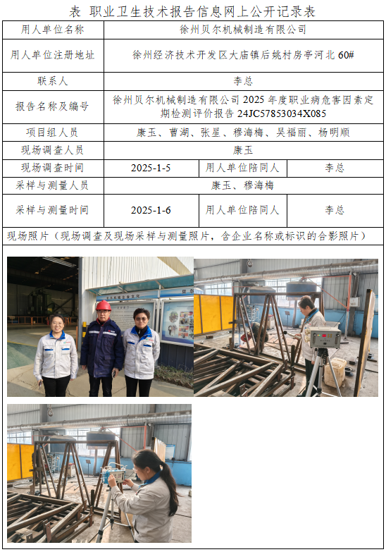 徐州贝尔机械制造有限公司2025年度职业病危害因素定期检测评价报告